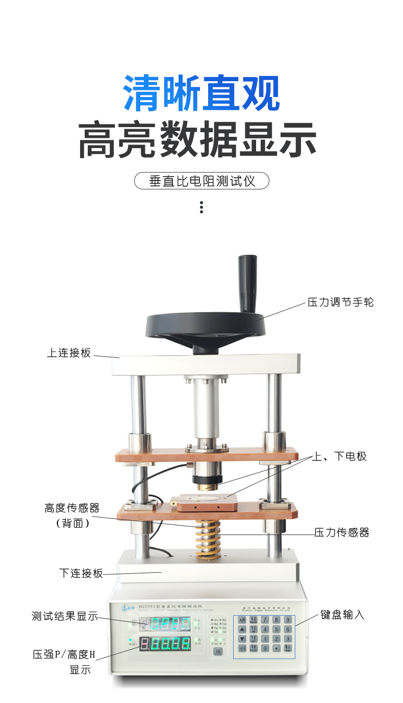 4:上下电极以及压力量程可定制,更好适应不同测试需求。